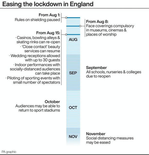 From Saturday August 15 socially distanced audiences will be allowed back into indoor venues, while wedding receptions of up to 30 people will also be permitted.