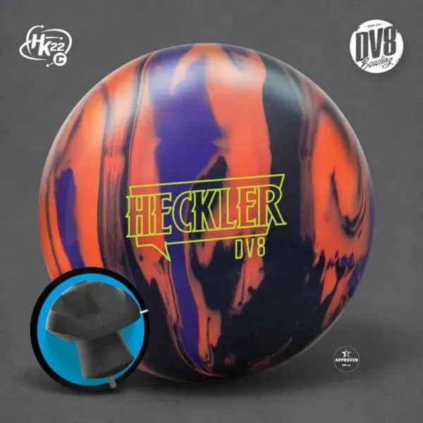 The DV8 Heckler is a high-performance bowling ball specifically designed for no-thumb and two-handed bowlers. Featuring an innovative asymmetric Unholy core, it excels in oily lane conditions, offering exceptional control and power.