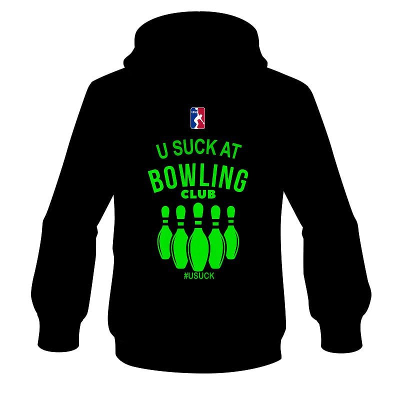 Drink beer, eat wings and pizza, throw a 7 count and repeat! We know how to have fun while sucking at bowling on league night, hell we are league bowlers ourselves who understand why you are there…..It is a handicap league so work on building your handicap while looking good in the 1 Handed #USuck@Bowling Lime Retro Official League Bowling Hoodie….Beer and wings sold separately.