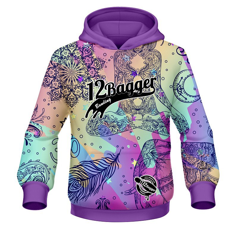 Look fresh and stay warm in the new 12Bagger Bowling Prismatic Tapestry Coolwick Dye-Sub Hoodie.