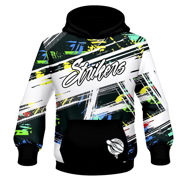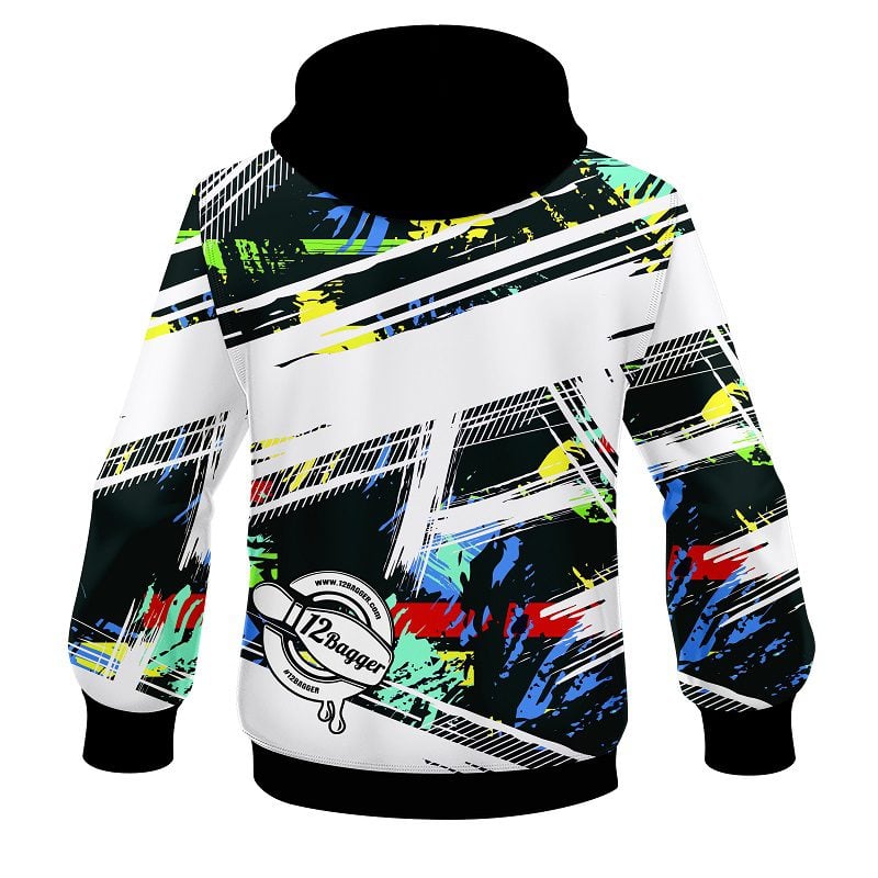 Look fresh and stay warm in the new 12Bagger Bowling Strikers Whiteout Coolwick Dye-Sub Hoodie.
