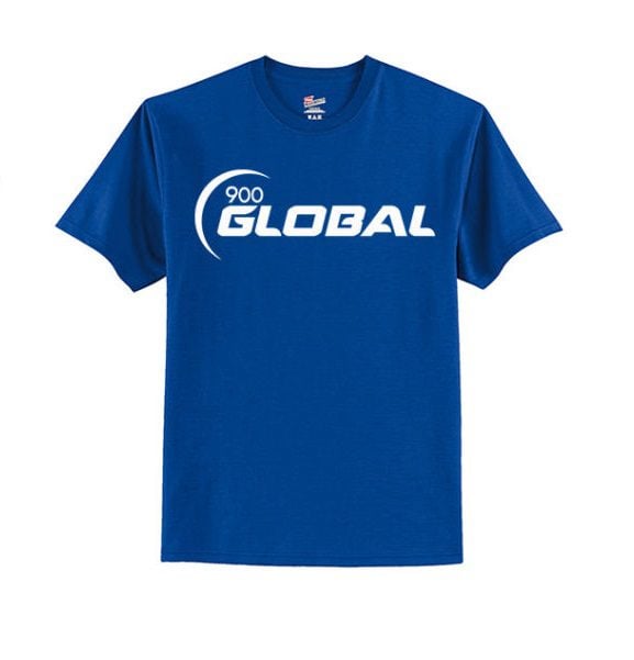 900 Global Men’s T-Shirt Bowling Shirt Tagless 100% Royal Blue White