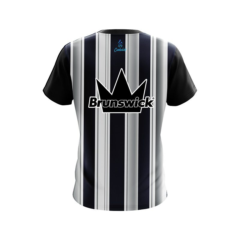 Stay 40% cooler with CoolWick. Our Brunswick Navy Blue And Silver Retro CoolWick Bowling Jerseys are made of two different fabrics with the back being our CoolWick technology fabric that helps wick moisture away and helps air flow more easily through the fibers