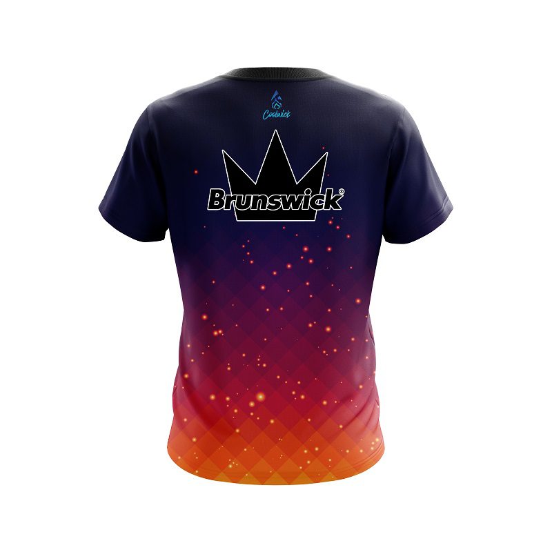 Stay 40% Cooler with the Brunswick Orange And Pink Fire Sparks CoolWick Bowling Jersey