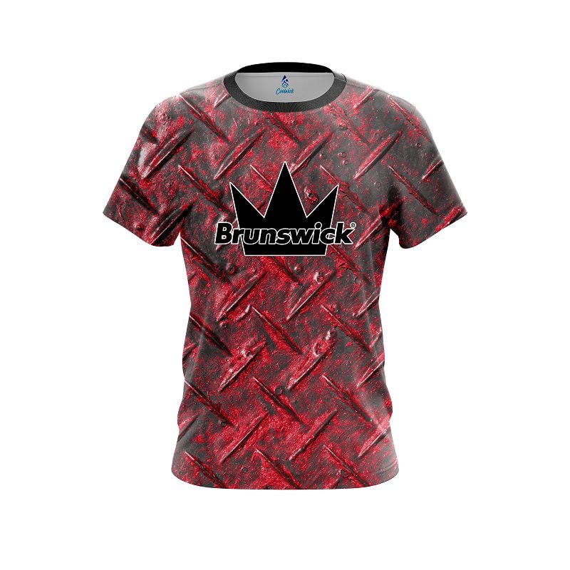 Stay 40% Cooler with the Brunswick Red Diamond Plate CoolWick Bowling Jersey