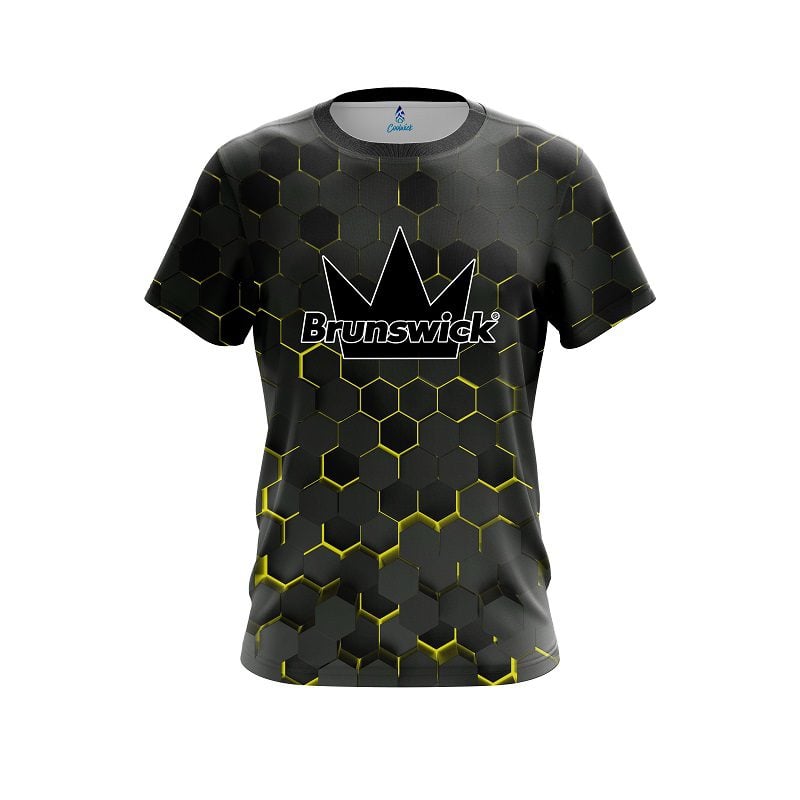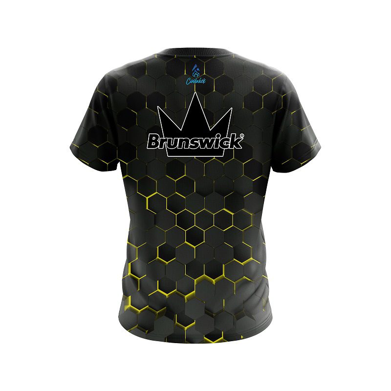 Stay 40% Cooler with the Brunswick Yellow Honeycomb Fusion CoolWick Bowling Jersey