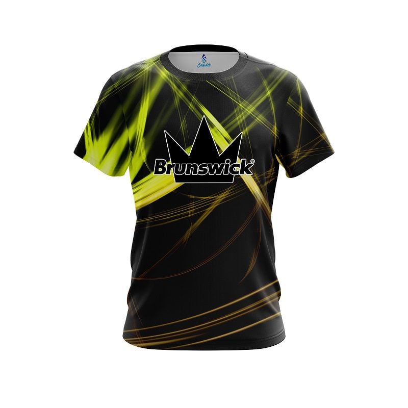 Stay 40% Cooler with the Brunswick Yellow Spiral CoolWick Bowling Jersey