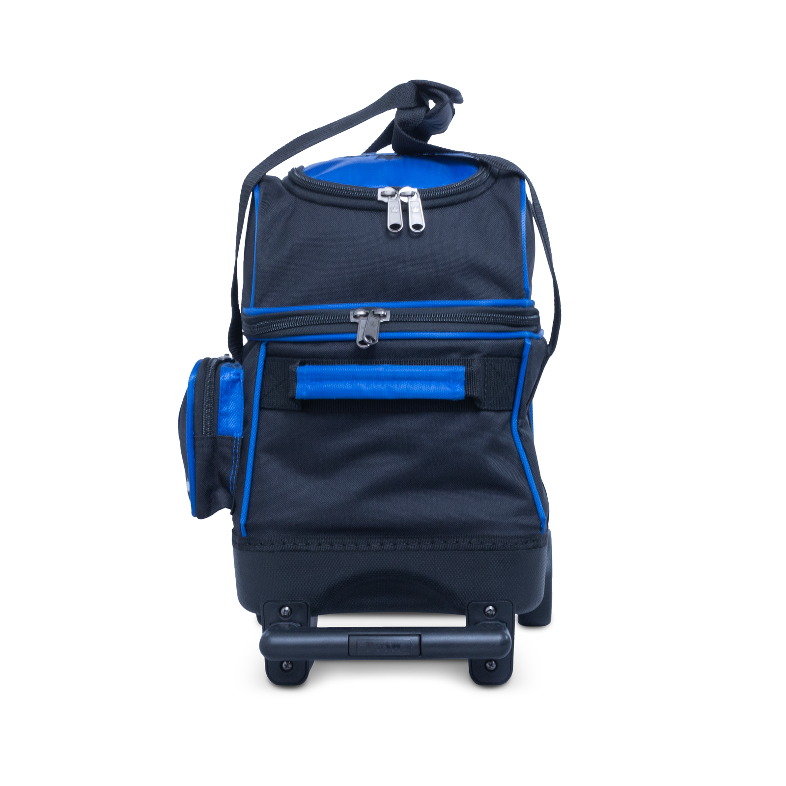 Brunswick Zone Blue โ reliable single roller with shoe and accessory compartments, retractable handle.