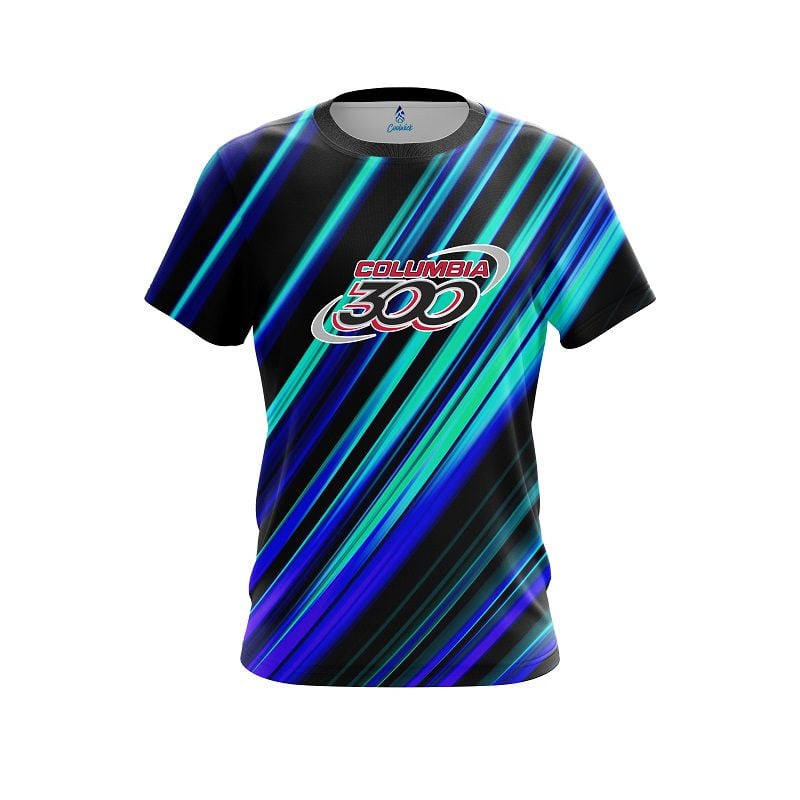 Columbia 300 Blue And Green Digital Stripe CoolWick Bowling Jersey