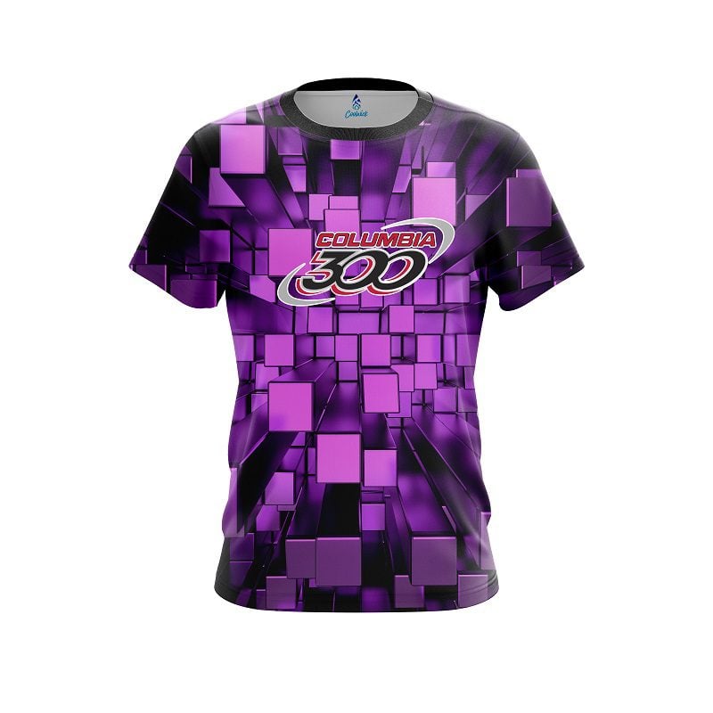 Stay 40% Cooler with the Columbia 300 Purple Block Burst CoolWick Bowling Jersey