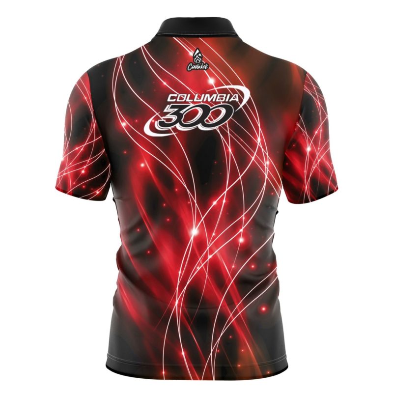 Columbia 300 Red Spirals Quick Ship CoolWick Sash Zip Bowling Jersey