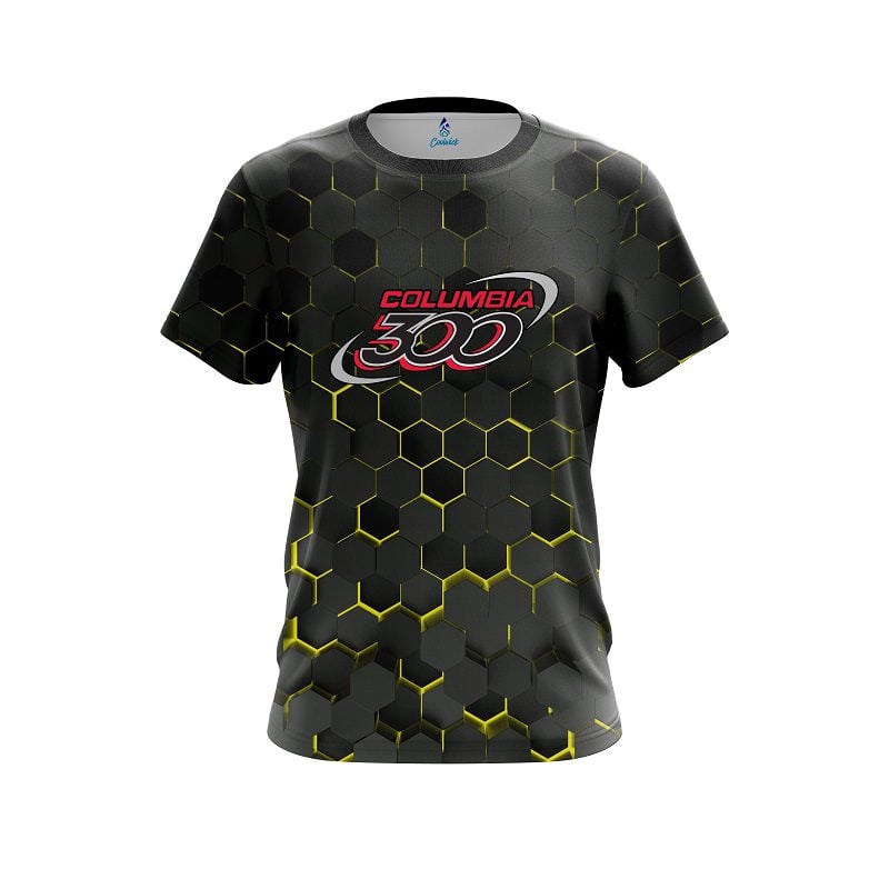 Stay 40% Cooler with the Columbia 300 Yellow Honeycomb Fusion CoolWick Bowling Jersey
