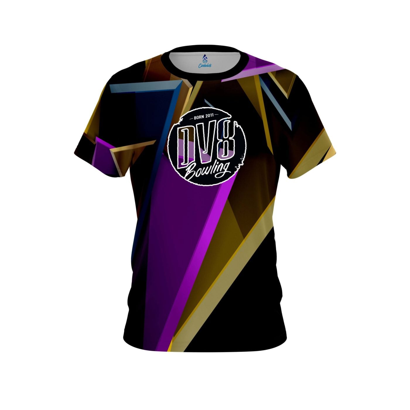 DV8 Chalice semi-custom bowling jersey in CoolWick’s 40% cooler moisture-wicking fabric. Add your name on back, choose your sleeve length and collar style, and place logos on the chest and sleeves. Hand-made in the USA. Free shipping.