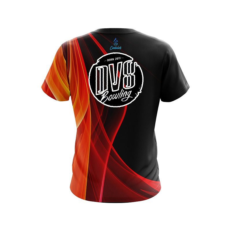 Stay 40% Cooler with the DV8 Deep Orange Curve CoolWick Bowling Jersey