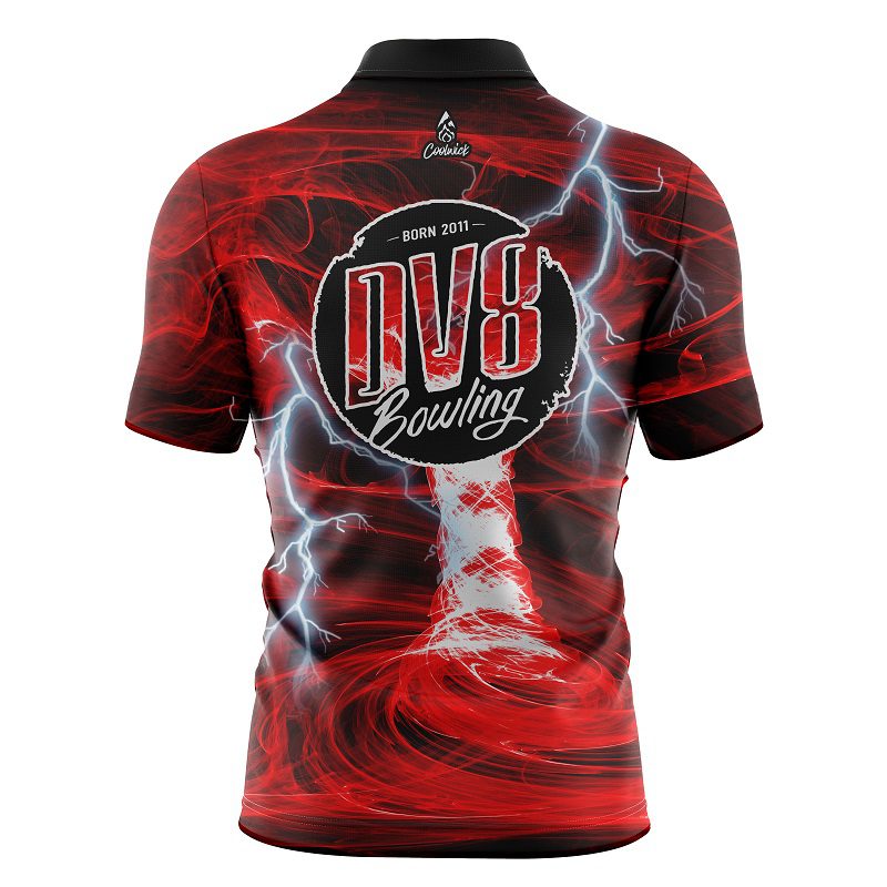DV8 Electrical Tornado Red Quick Ship CoolWick Sash Zip Bowling Jersey