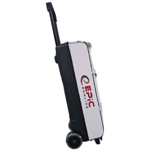 Epic Flash Triple Tote Deluxe White โ compact 3-ball tote roller, 5″ ball bearing wheels, molded ball protectors. 3-year warranty.