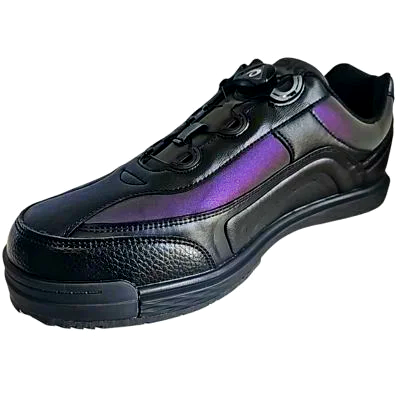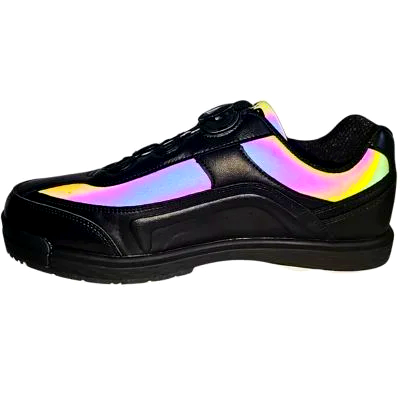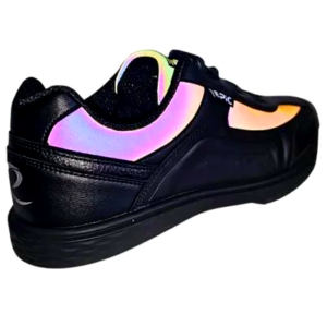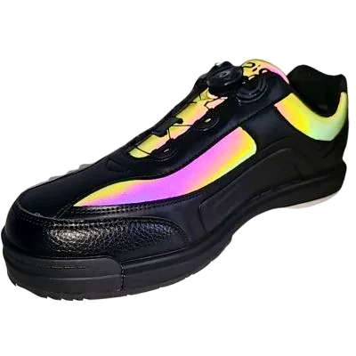 The Ares Dial combines two features that make a measurable difference on the approach: a dial closure system that delivers uniform, micro-adjustable fit without pressure points, and an interchangeable slide sole that lets you match your slide to any approach surface. The Black Refractor colorway delivers a sharp look that works for league nights and tournament play. The refractor finish catches light from every angle — these shoes turn heads on the lanes.
