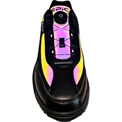 The Epic Men’s Ares Dial Black Refractor Right Hand Bowling Shoes feature the Epic Dial Closure System for tool-free micro-adjustable fit, a Power Flex EPIC EVA midsole, TPU heel stabilizer, and a removable B3 slide sole that accepts cross-brand replacements. Unisex sizing. Right hand. Ships free with no minimum purchase, backed by a 60-day return policy.