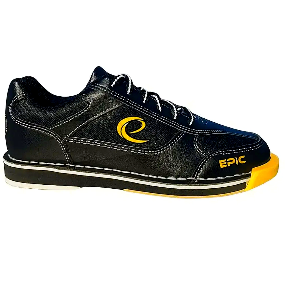 The Epic Boost T-1 Performance Right Hand Black Gold Bowling Shoes deliver interchangeable sole performance, a complete accessory package, and classic Black/Gold styling at a price that makes performance footwear accessible to bowlers at every level. The faux leather upper with mesh inlays balances durability with breathability. The removable sole and heel accept cross-brand compatible replacements. The box includes a shoe cover, shoe bag, and pre-attached sole and heel — everything you need to bowl from day one. Right hand. Unisex sizing. Ships free with no minimum purchase, backed by a 60-day return policy.