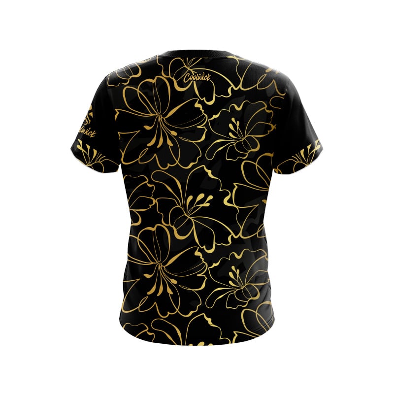 Gold Lily semi-custom bowling jersey built with CoolWick’s 40% cooler moisture-wicking fabric. Add your name on back, choose your sleeve length, and place logos on the chest and sleeves. Hand-made in the USA. Free shipping.