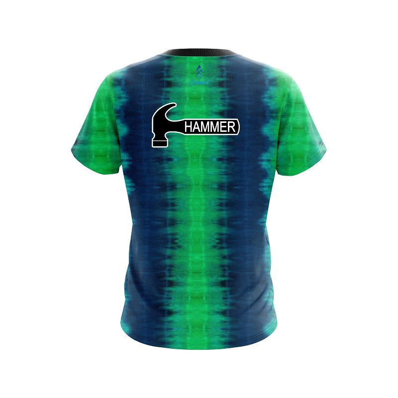 Stay 40% Cooler with the Hammer Blue And Green Tie Dye CoolWick Bowling Jersey