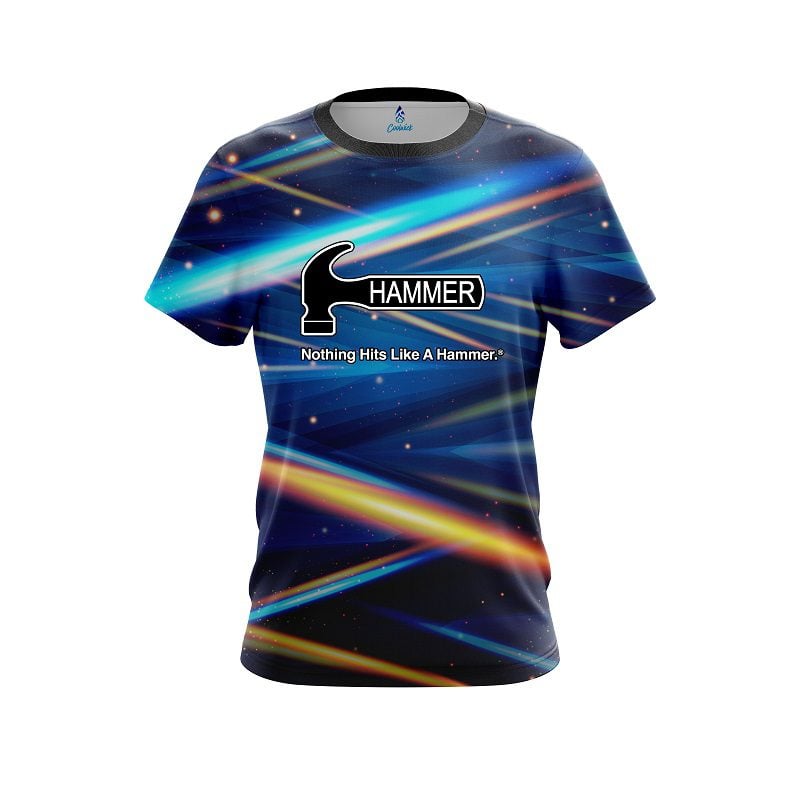 Stay 40% Cooler with the Hammer Blue Futuristic Rays CoolWick Bowling Jersey