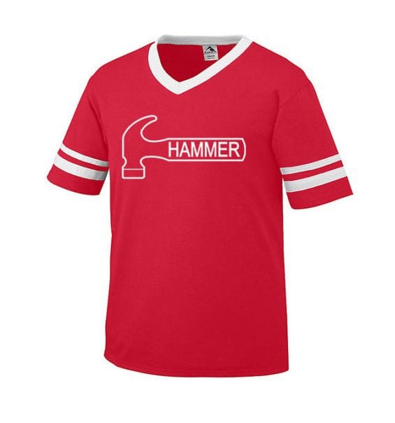 Hammer Men’s Vibe T-Shirt Bowling Shirt Sleeve Stripe Jersey 50/50 Red White
