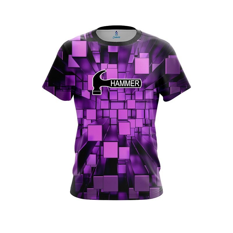 Stay 40% Cooler with the Hammer Purple Block Burst CoolWick Bowling Jersey