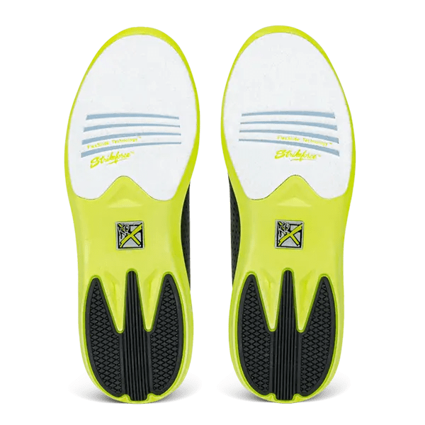 The KR Strikeforce Arrow FT comes with Fast Twist Freelock Dial Lacing System located on the tongue. Bowling shoe features an all-new soft, lightweight, breathable microfiber upper that has never been seen before on bowling shoes. The CMEVA outsole with the co-molded rubber heel ensures a comfortable fit and improved durability. The silky smooth sock liner combined with the higher stack height guarantees ultimate comfort. Finally, the lace-up closure with our Komfort-Fit construction makes it easy to get a secure fit on your foot. Arrow has a number eight white microfiber slide pad on both shoes with FlexSlide Technology
