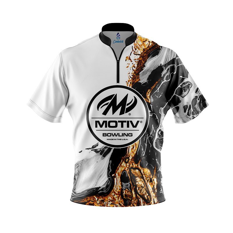 Motiv Black And Gold Liquid Marble Quick Ship CoolWick Sash Zip Bowling Jersey