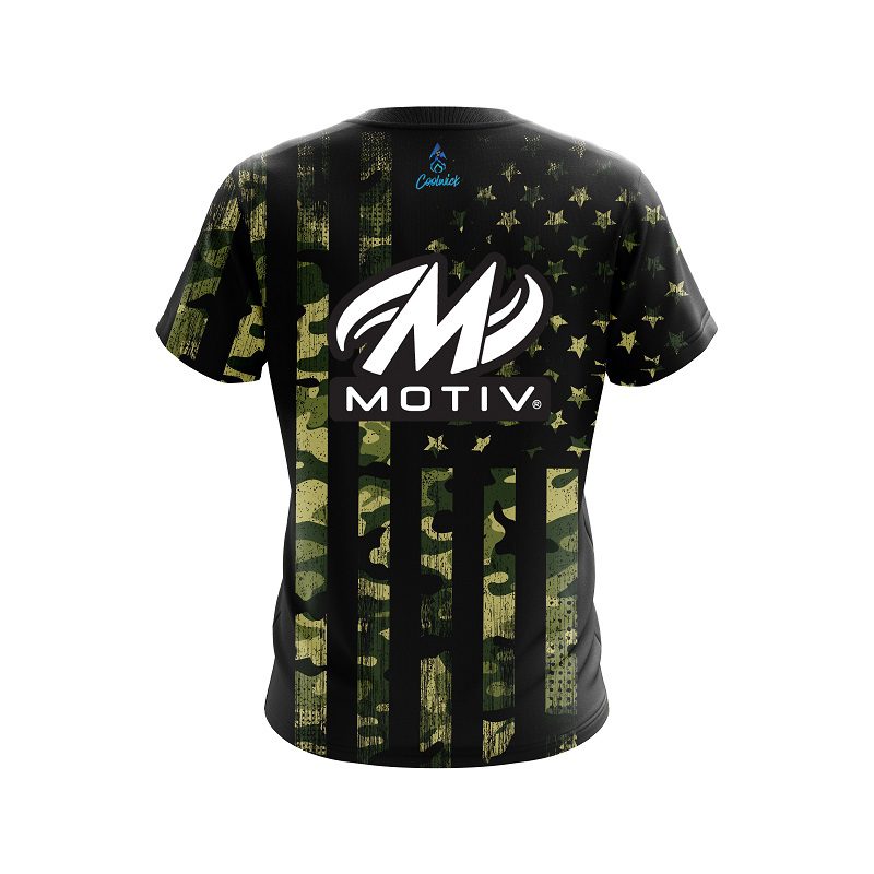Stay 40% cooler with CoolWick. Our Motiv Camouflage Flag CoolWick Bowling Jerseys are made of two different fabrics with the back being our CoolWick technology fabric that helps wick moisture away and helps air flow more easily through the fibers.
