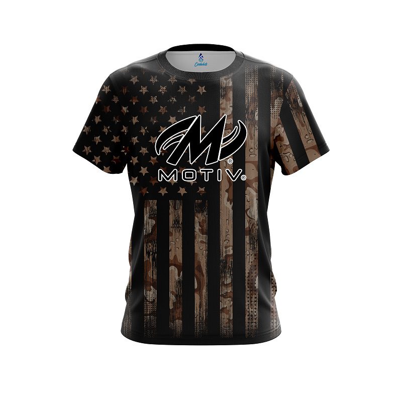 Stay 40% Cooler with the Motiv Desert Camo Flag CoolWick Bowling Jersey