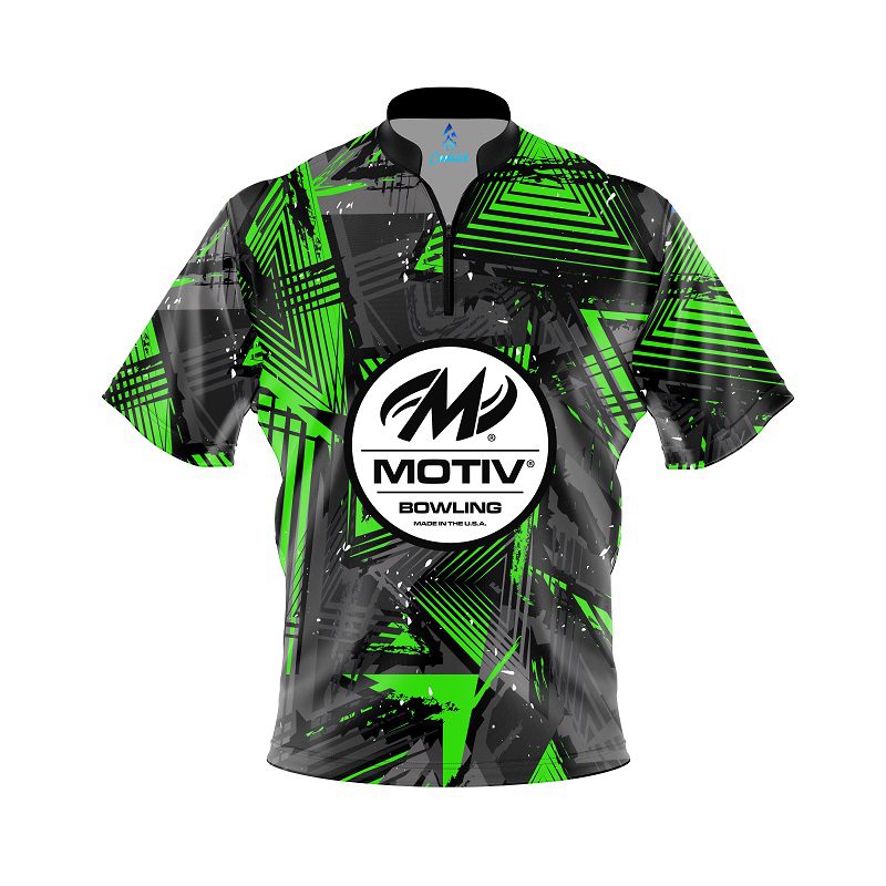 Motiv Green Triangles Quick Ship CoolWick Sash Zip Bowling Jersey