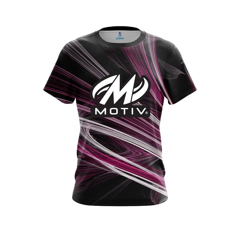 Stay 40% Cooler with the Motiv Pink Motion Swirl CoolWick Bowling Jersey