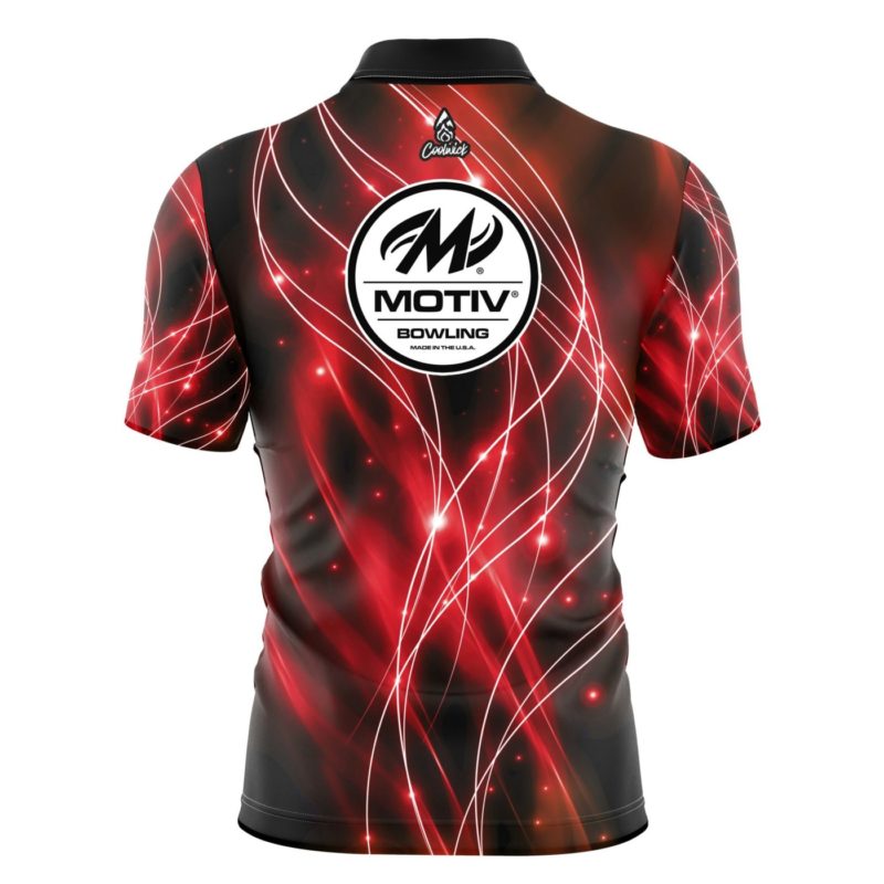 Motiv Red Spirals Quick Ship CoolWick Sash Zip Bowling Jersey
