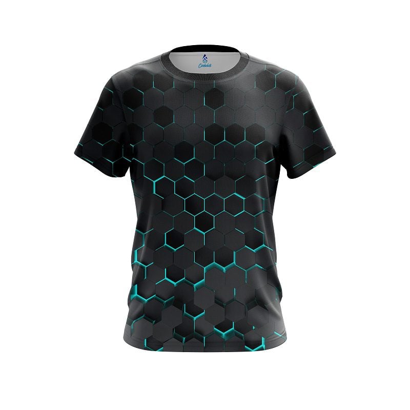 Stay 40% Cooler with the Plain Aqua Honeycomb Fusion CoolWick Bowling Jersey