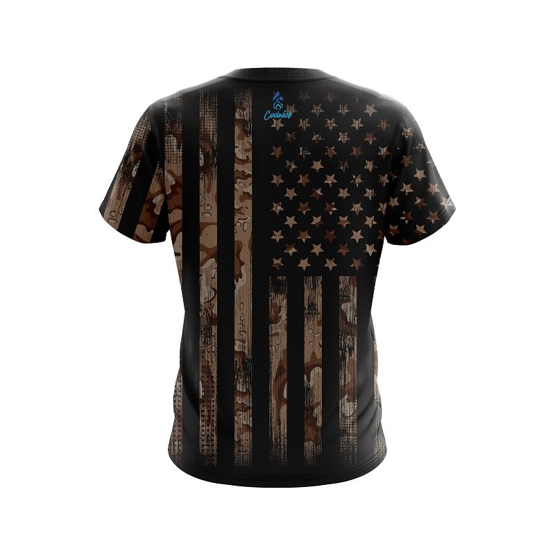 Stay 40% Cooler with the Plain Desert Camo Flag CoolWick Bowling Jersey