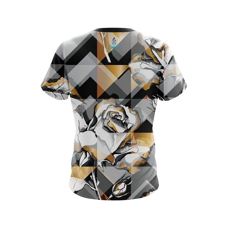 Stay 40% cooler with CoolWick. Our Plain Gold And Black Rose CoolWick Bowling Jerseys are made of two different fabrics with the back being our CoolWick technology fabric that helps wick moisture away and helps air flow more easily through the fibers.