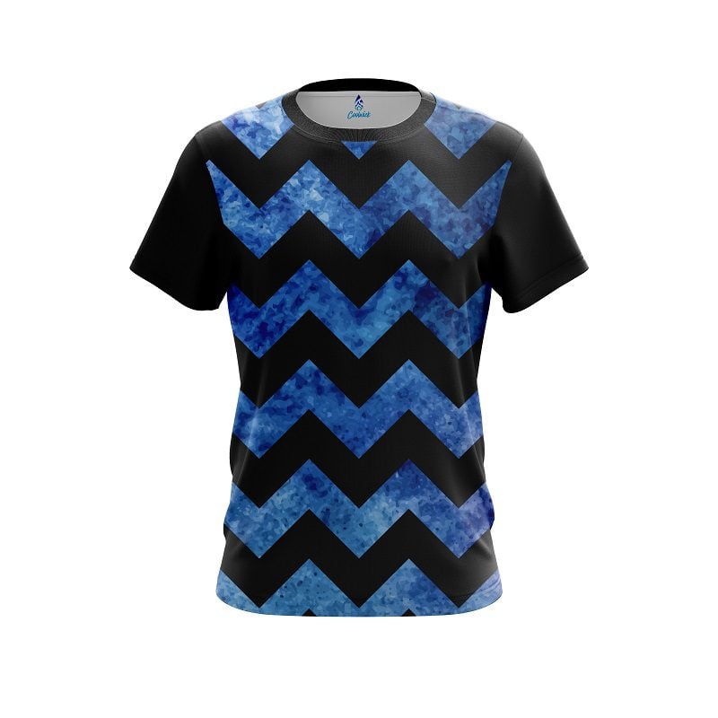 Stay 40% cooler with CoolWick. Our Plain Marble Zig Zag Blue CoolWick Bowling Jerseys are made of two different fabrics with the back being our CoolWick technology fabric that helps wick moisture away and helps air flow more easily through the fibers.