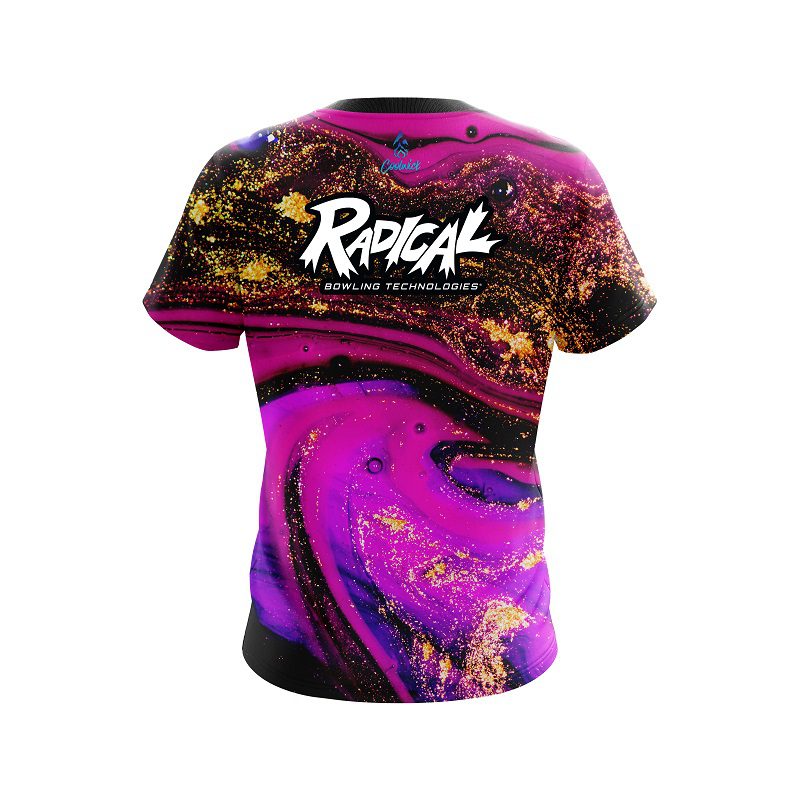 Stay 40% Cooler with the Radical Magenta Gold Liquid Marble CoolWick Bowling Jersey!