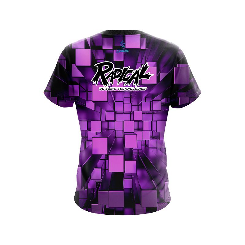 Stay 40% Cooler with the Radical Purple Block Burst CoolWick Bowling Jersey