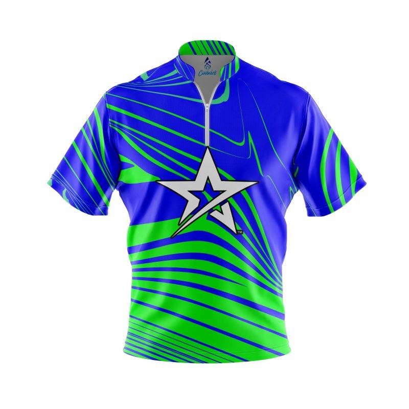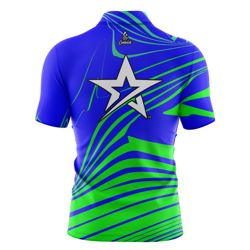 Roto Grip Green Blue Swirl Quick Ship CoolWick Sash Zip Bowling Jersey