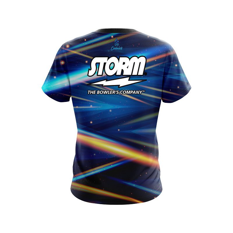 Stay 40% Cooler with the Storm Blue Futuristic Rays CoolWick Bowling Jersey