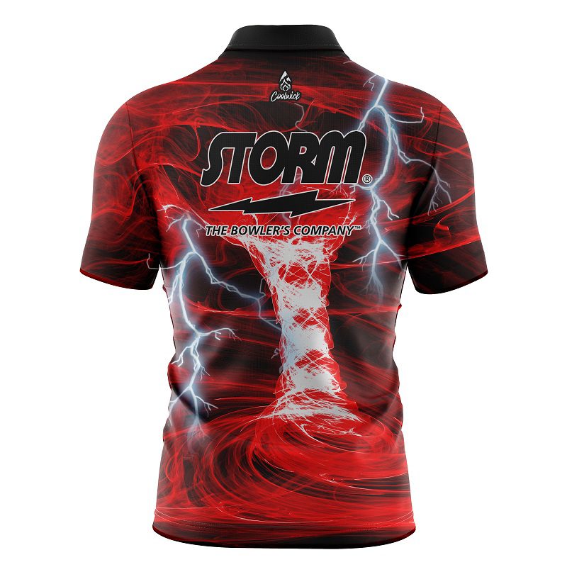 Storm Electrical Tornado Red Quick Ship CoolWick Sash Zip Bowling Jersey