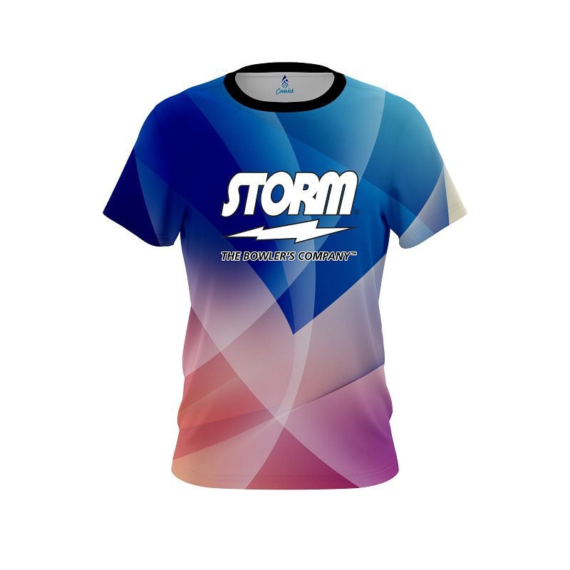 Storm Energy Twist semi-custom bowling jersey in CoolWick’s 40% cooler moisture-wicking fabric. Add your name on back, choose your sleeve length and collar style, and place logos on the chest and sleeves. Hand-made in the USA. Free shipping.