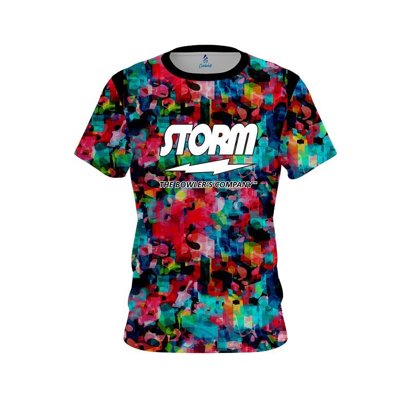 Storm Gorgeous semi-custom bowling jersey in CoolWick’s 40% cooler moisture-wicking fabric. Add your name on back, choose your sleeve length and collar style, and place logos on the chest and sleeves. Hand-made in the USA. Free shipping.