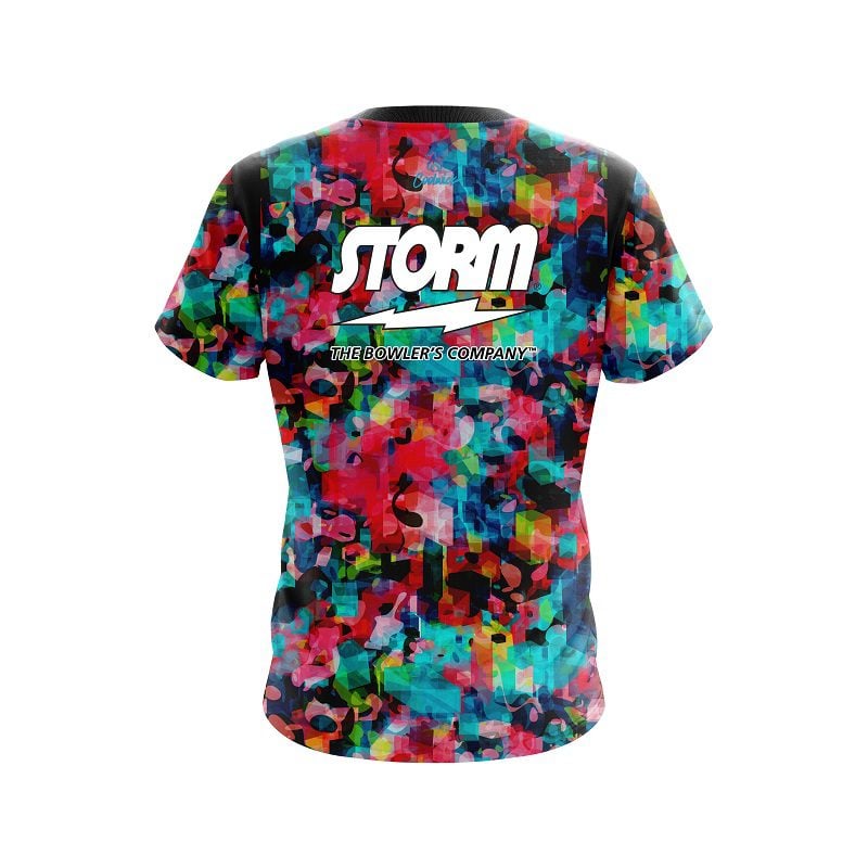 Storm Gorgeous semi-custom bowling jersey in CoolWick’s 40% cooler moisture-wicking fabric. Add your name on back, choose your sleeve length and collar style, and place logos on the chest and sleeves. Hand-made in the USA. Free shipping.