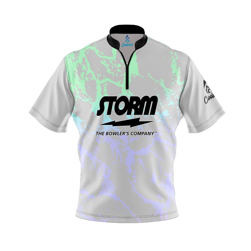 Stay 40% cooler with CoolWick. Our Storm Grey Graffiti Quick Ship CoolWick Sash Zip Bowling Jerseys are made of CoolWick technology fabric that helps wick moisture away and helps air flow more easily through the fibers.