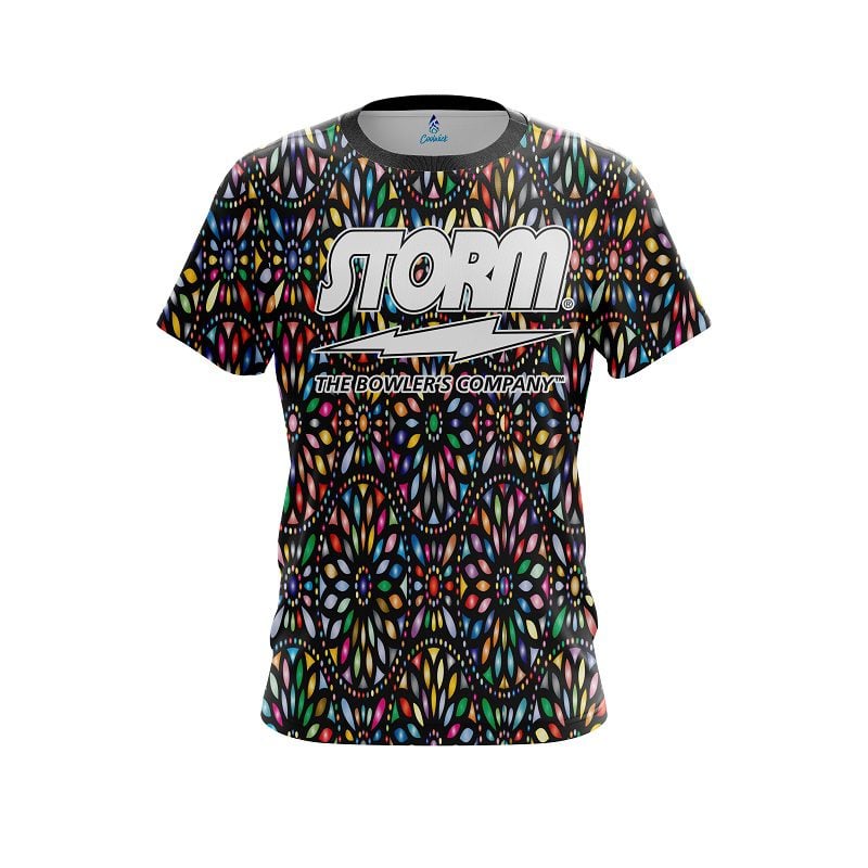 Stay 40% cooler with CoolWick. Our Storm Kaleidoscope Black CoolWick Bowling Jerseys are made of two different fabrics with the back being our CoolWick technology fabric that helps wick moisture away and helps air flow more easily through the fibers.