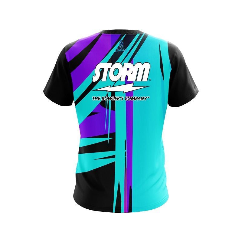 Storm Paint Brush Drip semi-custom bowling jersey in CoolWick’s 40% cooler moisture-wicking fabric. Add your name on back, choose your sleeve length and collar style, and place logos on the chest and sleeves. Hand-made in the USA. Free shipping.